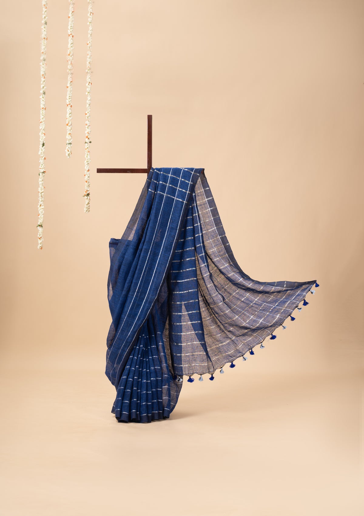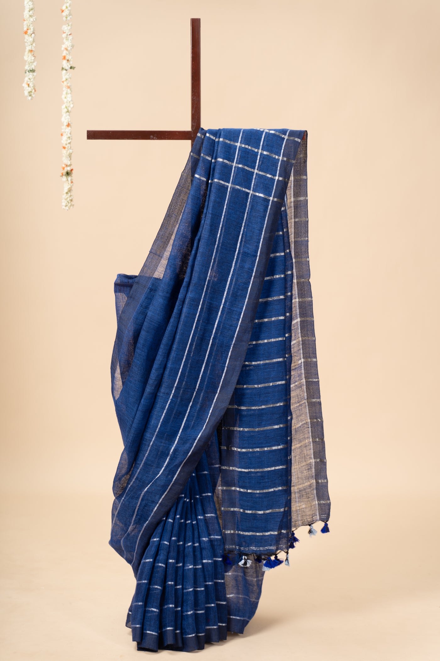- Zari linen sarees must be professionally dry cleaned to maintain the shine of the zari and the softness of the fabric. Avoid home washing—water and detergents can dull the zari threads.